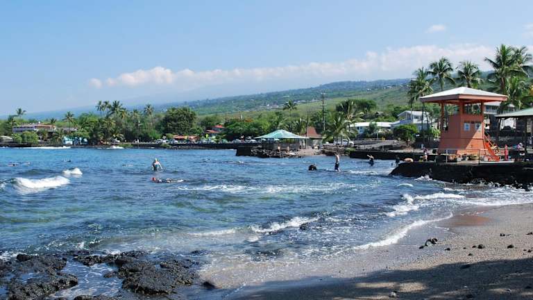 Die Unterkunft befindet sich in Kailua-Kona, nur 100 m vom Kahaluu Beach Park und 1,9 km vom White Sands Beach Park entfernt. Der nächstgelegene Flughafen, der Flughafen Kona International at Keahole, liegt 21 km entfernt. Die Gegend bietet zahlreiche Möglichkeiten zum Wandern und Velofahren.