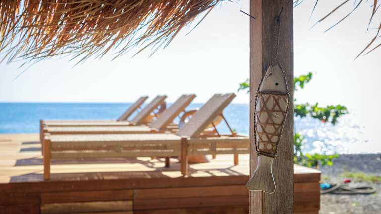 Beachfront Glamping - Escape in Nature bietet Gästen eine naturnahe Übernachtungsmöglichkeit mit einem Außenpool, einem kostenlosen Privatparkplatz und einem Garten. Zur Ausstattung gehören eine Gemeinschaftslounge sowie ein Zimmerservice. Des Weiteren steht kostenloses WLAN zur Verfügung. Die Unterkunft hat eine Terrasse mit Meerblick und ein Restaurant mit Bar.