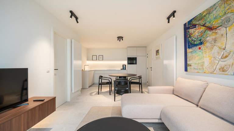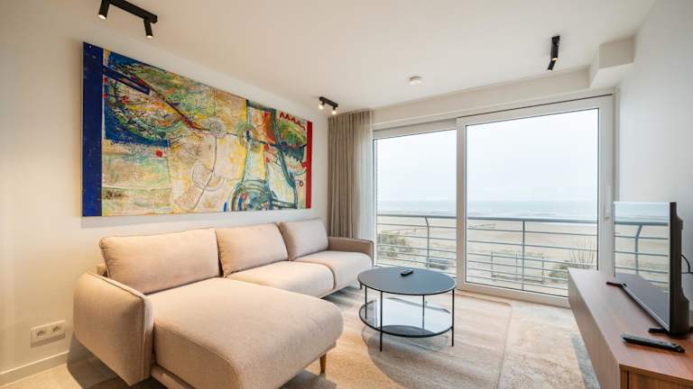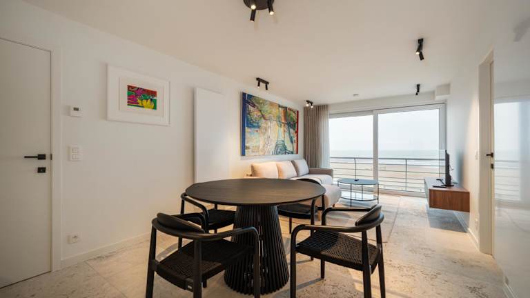 Die Unterkunft Beachfront Luxe - Stijlvol app met frontaal zeezicht befindet sich in Koksijde, nur 10 Meter vom Strand Baldus entfernt. Die Umgebung bietet einen direkten Zugang zum Strand und ist ein idealer Ort für Ferien am Meer.