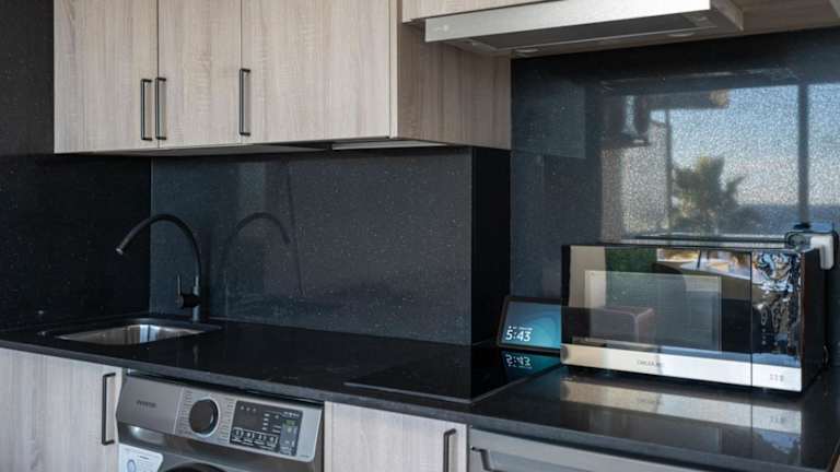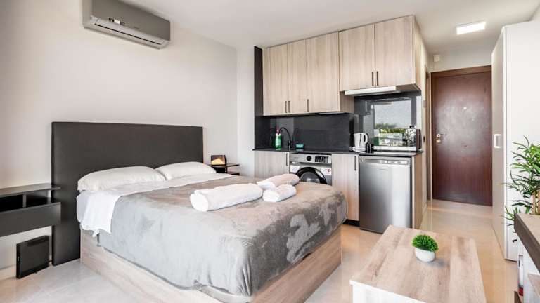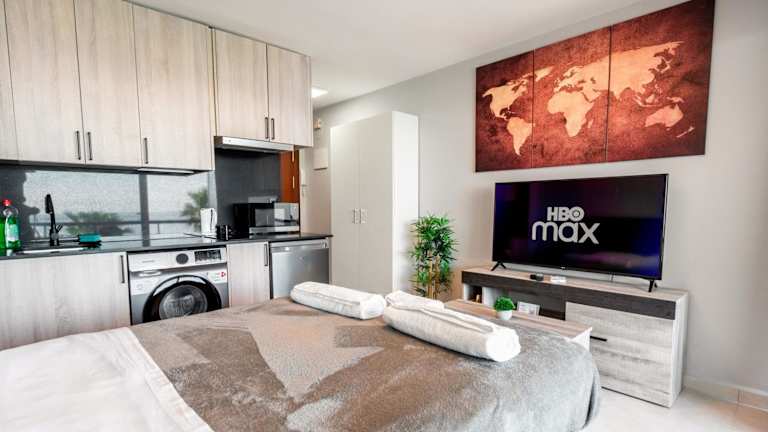 Die Ferienwohnung ist ausgestattet mit 1 Schlafzimmer, 1 Badezimmer, Bettwäsche, Handtüchern, Flachbild-TV, einer voll ausgestatteten Küche und einer Terrasse mit Meerblick. Die Unterkunft verfügt über Klimaanlage und Haushaltsannehmlichkeiten wie Kühlschrank und Kaffeemaschine.