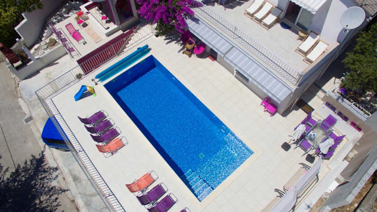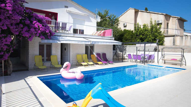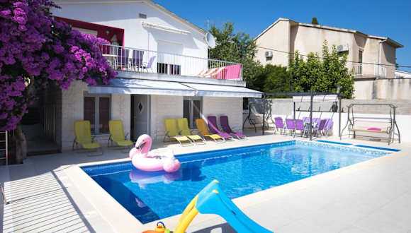 Die Unterkunft Beachfront Villa Pinky befindet sich in Seget Vranjica, nur 20 Meter vom Strand Sedlo entfernt. Sehenswürdigkeiten in der Umgebung sind der Archäologische Park Salona (27 km) und das Mladezi Park-Stadion (32 km). Der Flughafen Split liegt 10 km entfernt.