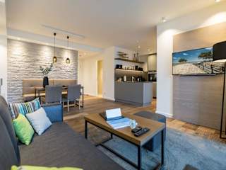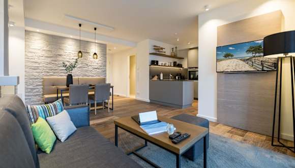 Die Ferienwohnung umfasst ein Schlafzimmer, ein Wohnzimmer und ein Badezimmer, das mit einer Dusche ausgestattet ist. Die gut ausgestattete Küchenzeile beinhaltet einen Kühlschrank sowie einen Geschirrspüler. Zusätzlich sind Handtücher und Bettwäsche vorhanden. Ein Flachbild-TV sorgt für die notwendige Unterhaltung. Die Unterkunft ist nichtraucher und verfügt über einen Aufzug.