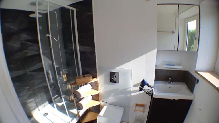 Die Ferienwohnung verfügt über ein Schlafzimmer, ein Badezimmer, Bettwäsche, Handtücher und einen Flachbild-TV. Zudem gibt es eine voll ausgestattete Küchenzeile und eine Terrasse mit Gartenblick.