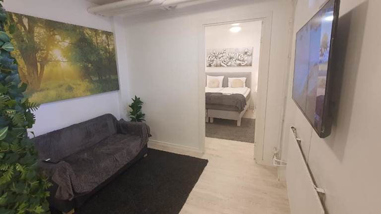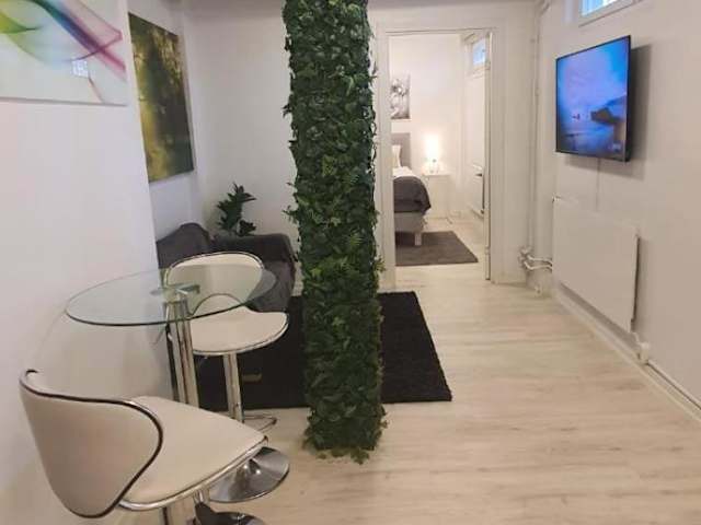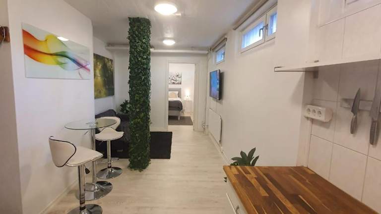 Die Unterkunft befindet sich in der Nähe der Metro und bietet eine ruhige Lage mit Gartenblick. Sie liegt ungefähr 10 km vom Schloss Drottningholm und 14 km vom Rathaus Stockholm entfernt. Der Flughafen Stockholm/Bromma ist nur 7 km entfernt.