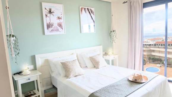 Beautiful, boho, sea view Los Gigantes apartment bietet Übernachtungsmöglichkeiten mit einer eigenen Terrasse, einer Bar und kostenlosem Wifi sowie einem eigenen Pool.