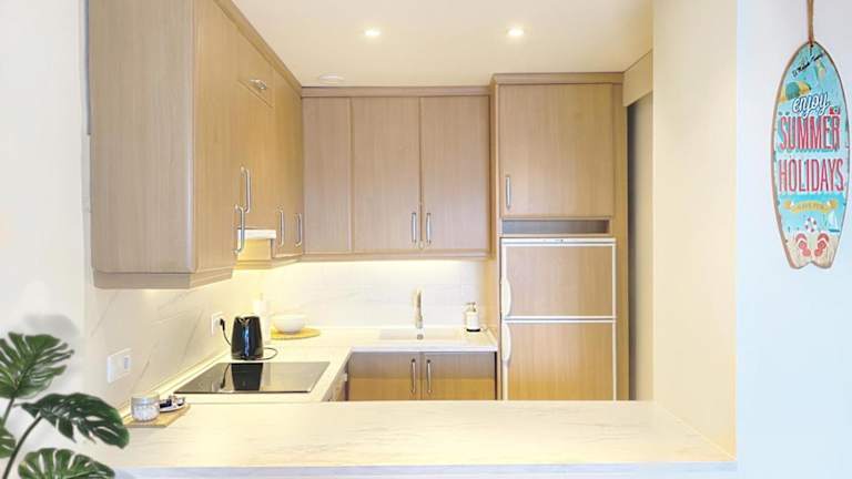 Die Ferienwohnung ist klimatisiert und beinhaltet 1 Schlafzimmer, einen Flachbild-TV sowie eine Küche, die mit einem Kühlschrank und einem Geschirrspüler ausgestattet ist. Handtücher und Bettwäsche werden zur Verfügung gestellt.