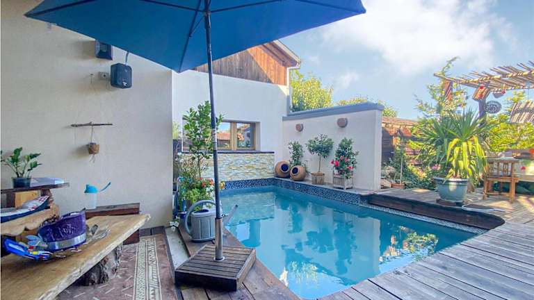 Das Ferienhaus umfasst insgesamt 5 Schlafzimmer, verfügt über Kabel TV und bietet einen angenehmen Essbereich. Eine gut ausgestattete Küche mit Kühlschrank und ein Wohnzimmer runden die Ausstattung ab. Für Bequemlichkeit sorgt die Klimaanlage in der Unterkunft.