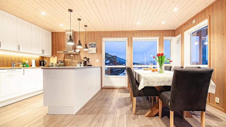 Beautiful mountain View Cabin in Lofoten bietet Übernachtungsmöglichkeiten in einem heimeligen Ferienhaus mit 4 Schlafzimmern, einem Wohnzimmer und einer voll ausgestatteten Küche. Die Unterkunft verfügt über Annehmlichkeiten wie kostenloses Wifi und einen Flachbild-TV. Handtücher und Bettwäsche werden bereitgestellt. Haustiere sind nicht gestattet und Feierlichkeiten sind nicht erlaubt.