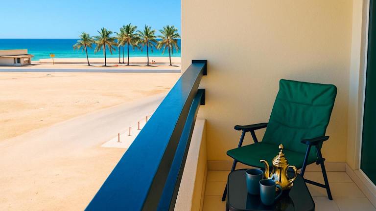 Beautiful Salalah Beach Apartments - 3 By Beautiful Salalah Tours bietet klimatisierte Wohneinheiten mit Meerblick. Die Unterkunft umfasst eine Terrasse mit Stadtblick und hat eine einladende Atmosphäre.