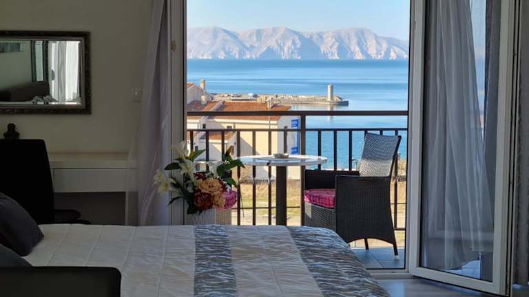Die Unterkunft bietet Übernachtungsmöglichkeiten in einem luxuriösen Studio mit einer voll ausgestatteten Küche, einem Kühlschrank und einer Herdplatte. Jedes Studio verfügt über einen Balkon mit Meerblick, einen Sitzbereich sowie einen Satelliten Flachbild-TV. Ein eigenes Badezimmer mit Dusche und Haartrockner ist ebenfalls vorhanden. Check-in ist ab 15:30 bis 23:30 Uhr möglich, und der Check-out erfolgt zwischen 07:30 und 10:00 Uhr.