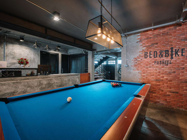 Das Bed & Bike Hostel bietet klimatisierte Übernachtungsmöglichkeiten sowie eine Gemeinschaftslounge. Die Unterkunft verfügt über eine Gemeinschaftsküche und eine Gepäckaufbewahrung für die Gäste.