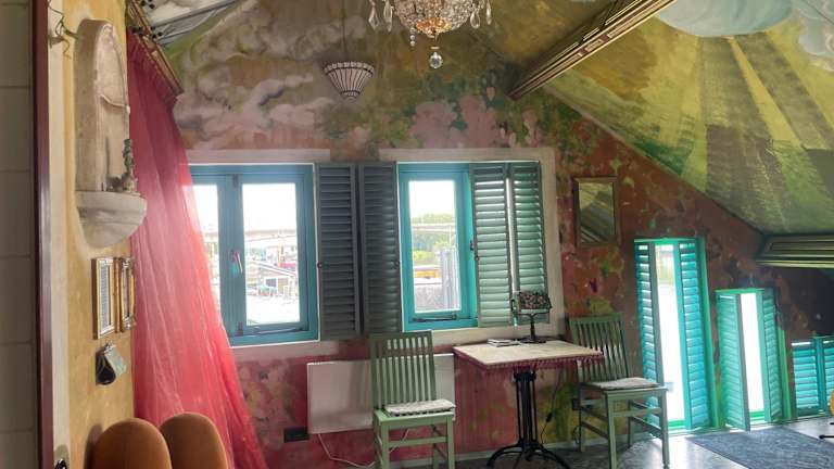 Die Unterkünfte auf dem Hausboot Drijfpaleis sind einzigartig und bieten Ihnen eine ganz besondere Erfahrung. Jedes Zimmer ist individuell gestaltet und verfügt über farbenfrohe Mosaiken, die eine lebhafte und einladende Atmosphäre schaffen. Die Zimmer sind mit kostenfreiem Internetzugang (LAN) und Kabel-TV ausgestattet. Sie können Ihre Zeit auf Ihrer eigenen Terrasse am Flussufer genießen und den Blick auf das Wasser und die vorbeiziehenden Boote und Vögel genießen.