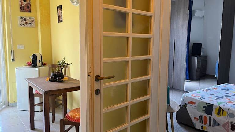 Das klimatisierte Ferienhaus im Bed Cafe verfügt über 1 Schlafzimmer, ein Wohnzimmer, eine voll ausgestattete Küche mit Kühlschrank und Kaffeemaschine sowie ein Badezimmer mit Bidet und Dusche. Handtücher und Bettwäsche werden gestellt, damit sich die Gäste wie zu Hause fühlen können. Der Meerblick von der Terrasse und dem Balkon rundet das Urlaubserlebnis ab.