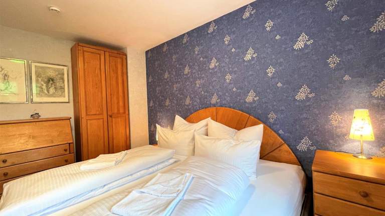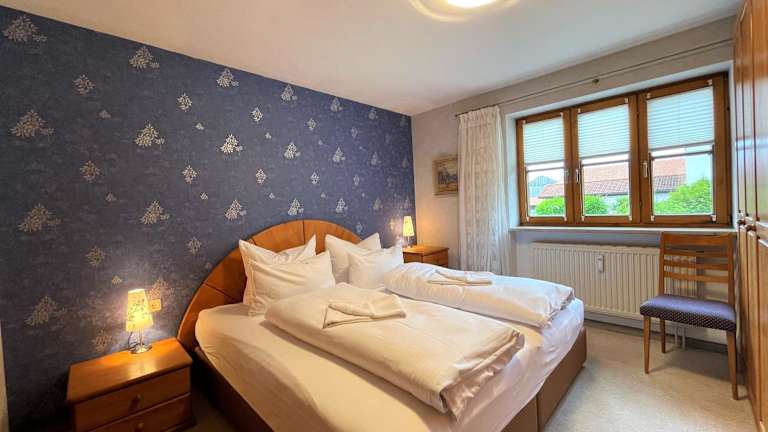 Die Ferienwohnung verfügt über ein Schlafzimmer, einen TV sowie eine voll ausgestattete Küche. Zur Küchenausstattung gehören ein Kühlschrank, ein Geschirrspüler, eine Waschmaschine, ein Ofen und eine Mikrowelle. Handtücher und Bettwäsche werden bereitgestellt.