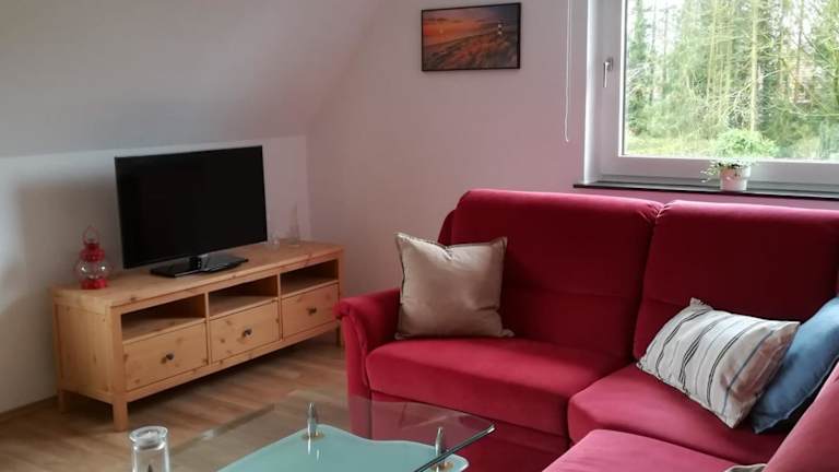 Die Ferienwohnung bei Maria + Kalle bietet einen Garten sowie eine Grillmöglichkeit und ist ideal für einen entspannten Aufenthalt.