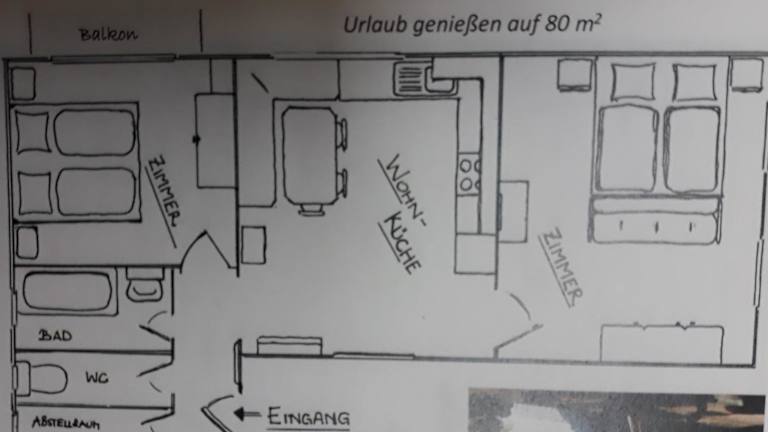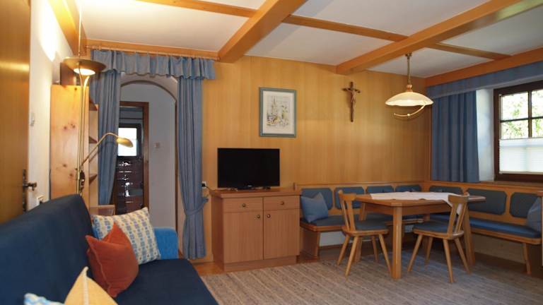 Die Ferienwohnung beinhaltet ein Wohnzimmer mit einem Satelliten Flachbild-TV sowie eine voll ausgestattete Küche mit Kühlschrank. Handtücher und Bettwäsche werden bereitgestellt. Die Wohnung ist mit einem Balkon ausgestattet, der einen schönen Blick auf die Berge bietet.