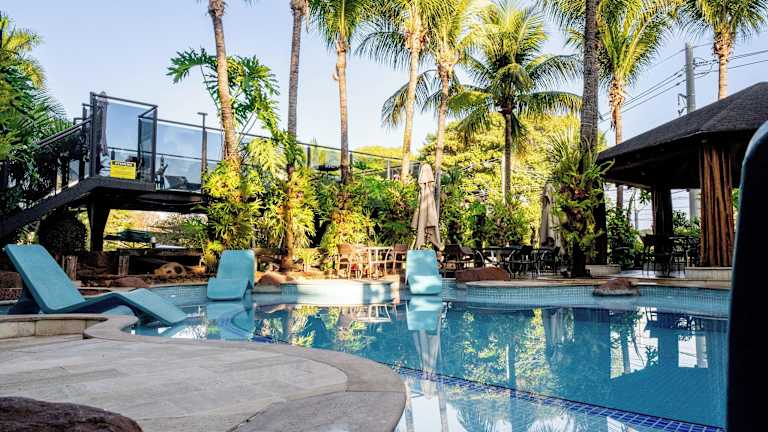 Das Beira Rio Palace Hotel hat klimatisierte Zimmer und bietet kostenfreies WLAN sowie Parkiermöglichkeit. Zu den Einrichtungen gehören ein Pool mit Wasserfall, ein Restaurant, eine Bar, ein Fitnesscenter und eine Sonnenterrasse. Die Reception ist rund um die Uhr besetzt, und es stehen Wäschemöglichkeiten zur Verfügung.