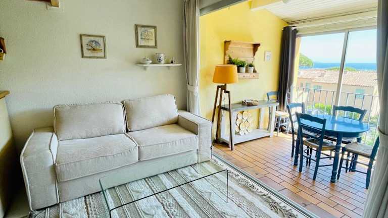 Das Bel appartement avec mezzanine, vue mer et piscine bietet eine angenehme Ferienwohnung mit einem modernen Ambiente. Die Unterkunft verfügt über einen saisonalen Aussenpool, eine Terrasse sowie einen Tennisplatz und besticht durch einen herrlichen Meerblick.