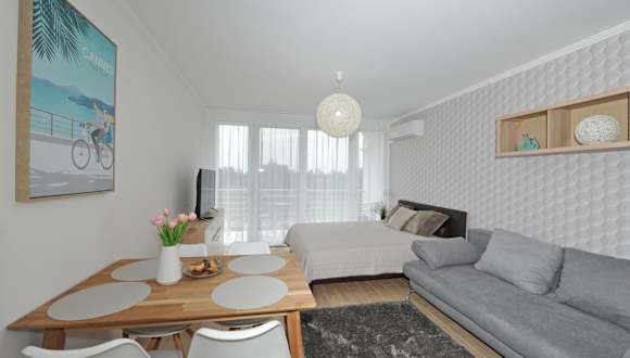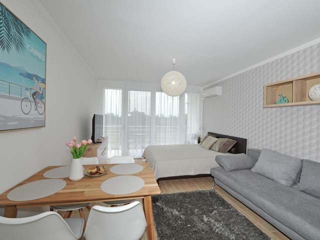 Die Ferienwohnung umfasst ein Schlafzimmer, ein Wohnzimmer und eine voll ausgestattete Küchenzeile mit Kühlschrank und Kaffeemaschine. Ein Badezimmer mit Dusche und Haartrockner ist ebenfalls vorhanden. Handtücher und Bettwäsche werden zur Verfügung gestellt. Die Unterkunft bietet zudem Klimaanlage.