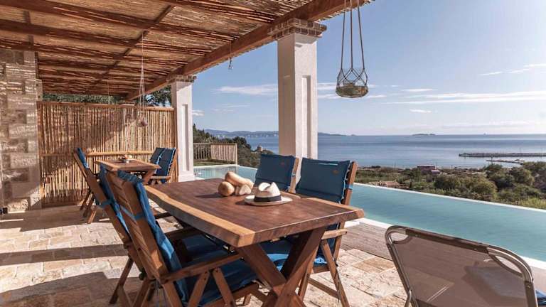 Bella Vista Ereikousa bietet Übernachtungsmöglichkeiten mit kostenlosem Wifi und Klimaanlage. Die Gäste können den Garten mit einem Aussenpool geniessen. Die Unterkunft ist gut ausgerüstet und bietet eine Terrasse mit Stadtblick.