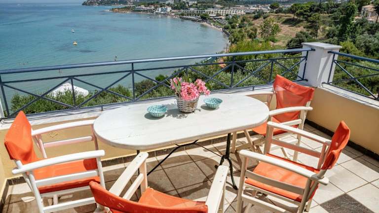 Das Bella Vista Sea View Apartments liegt auf Zakynthos und bietet eine traumhafte Lage direkt am Meer. Der Strand ist nur 20 m entfernt und über eine Steintreppe erreichbar. Von der Unterkunft aus genießen Sie einen atemberaubenden Panoramablick auf das Ionische Meer. Die Inselhauptstadt Zakynthos liegt etwa 8 km entfernt und das Dorf Tsilivi mit seinen Restaurants und Cafés erreichen Sie in nur 1 km Entfernung.