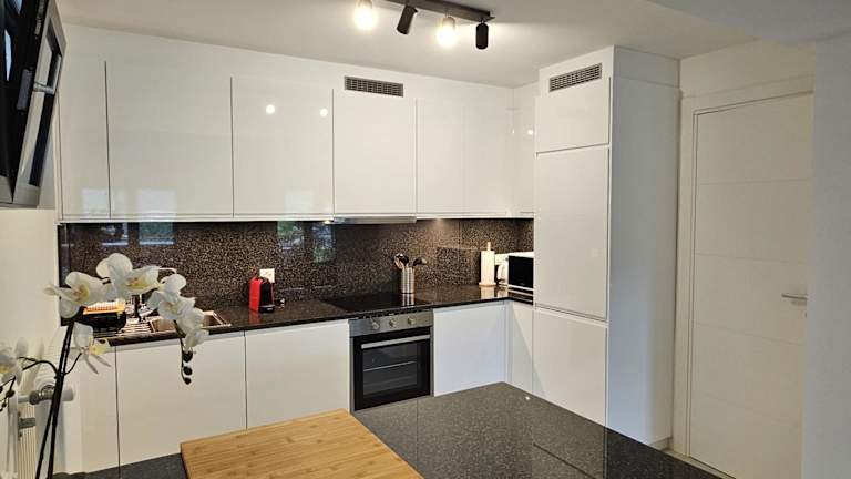 Die Ferienwohnung verfügt über 1 Schlafzimmer, eine gut ausgestattete Küche mit Kühlschrank und Geschirrspüler sowie 2 Badezimmer, die jeweils mit einer Dusche, einem Haartrockner und einer Waschmaschine ausgestattet sind. Handtücher und Bettwäsche werden bereitgestellt.