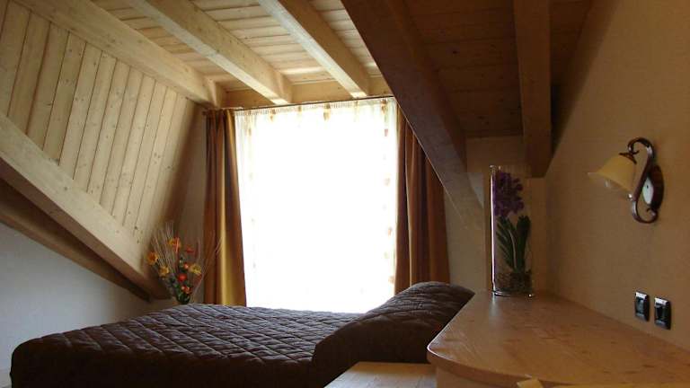 Die Zimmer sind im rustikalen Stil mit Holzmöbeln und Balkendecken eingerichtet und verfügen über schallisolierte Räume sowie gratis Wifi. Für die Bequemlichkeit der Gäste stehen Nichtraucherzimmer zur Verfügung.