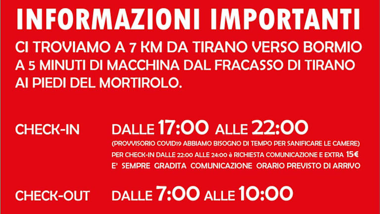 Das Hotel befindet sich in Tovo di Sant'Agata, ungefähr auf halbem Weg zwischen Tirano und Bormio. Es bietet gute Busverbindungen zu beiden Orten und ist nur 7 km von der Tirano Station entfernt, die Zugverbindungen zu verschiedenen Skigebieten entlang des Bernina Pass bietet. Die Umgebung ist ideal für Velofahrer, da sich mehrere Radwege in der Nähe befinden, darunter der Aufstieg zum Mortirolo.