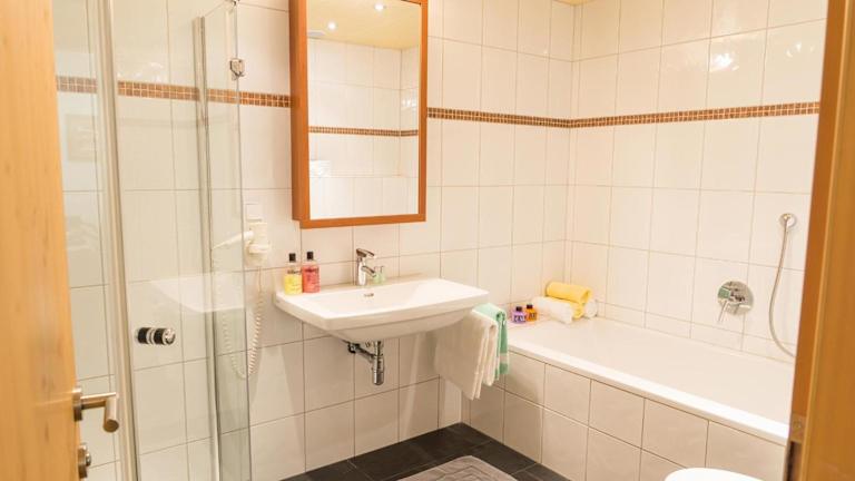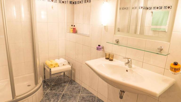 Die Zimmer sind mit einem voll ausgestatteten eigenen Badezimmer mit einer Dusche und einem Haartrockner ausgestattet.