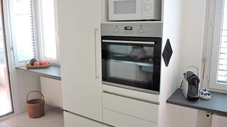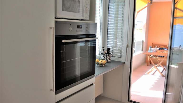 Die Ferienwohnung verfügt über einen Balkon, ein Schlafzimmer, ein Wohnzimmer sowie eine gut ausgestattete Küche mit Kühlschrank und Geschirrspüler. Handtücher und Bettwäsche werden bereitgestellt.