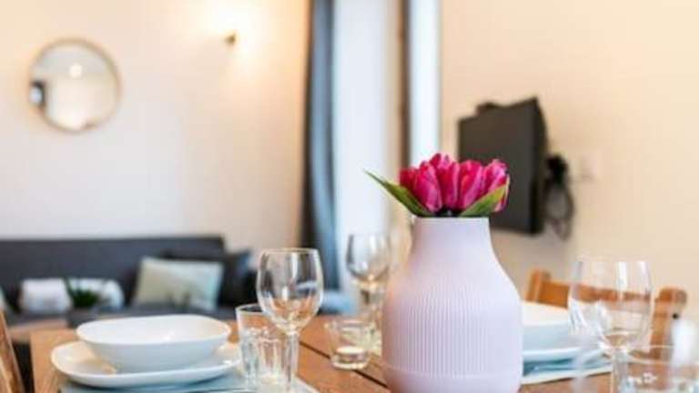 Die Ferienwohnung verfügt über 1 Schlafzimmer und ein Wohnzimmer mit einem Flachbild-TV. Eine gut ausgestattete Küche mit Kühlschrank und Geschirrspüler sowie ein Badezimmer mit Dusche sind ebenfalls vorhanden. Handtücher und Bettwäsche werden bereitgestellt.