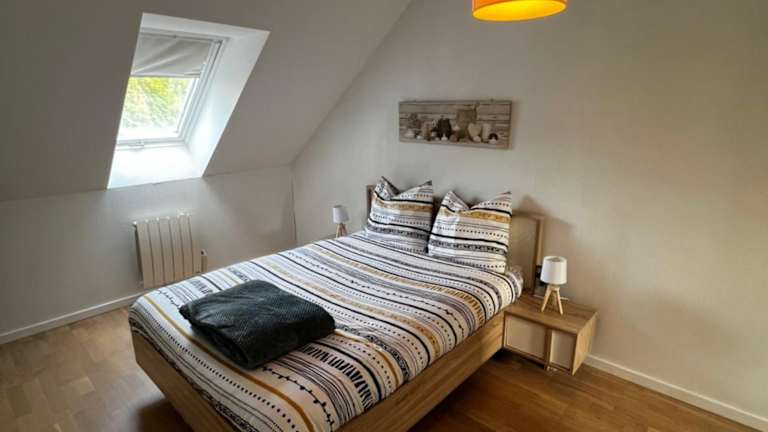 Die Belle maison familiale proche du lac ist ein Ferienhaus, das mit einem schönen Gartenblick und verschiedenen Annehmlichkeiten ausgestattet ist. Es bietet eine Terrasse und einen Balkon zur Erholung im Freien. Die Unterkunft erlaubt keine Junggesellen- oder ähnliche Feiern und hat spezielle Anforderungen an den Check-in sowie bezüglich der Altersgrenzen der Gäste.