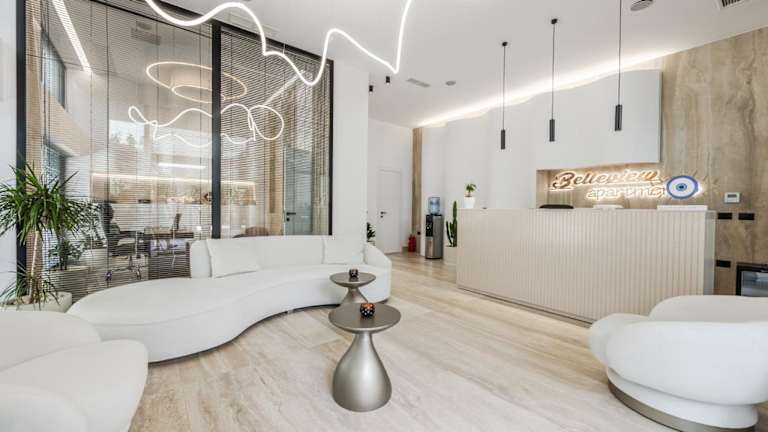 Das Belleview Apartment 1 bietet eine Terrasse, ein Restaurant und eine Bar und ermöglicht Übernachtungen mit kostenlosem Wifi und Stadtblick.
