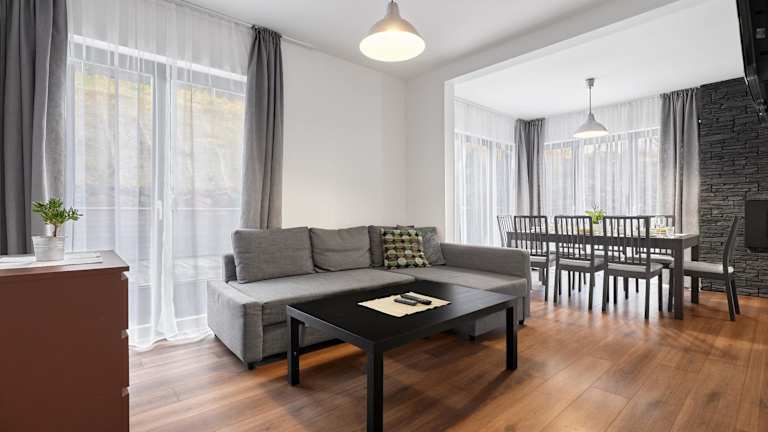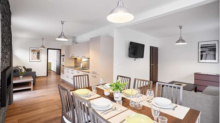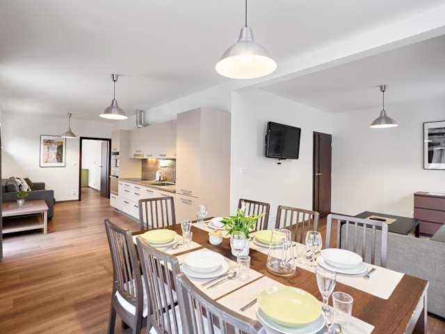 Die Ferienwohnung besteht aus 2 Schlafzimmern, einem Wohnzimmer und einer voll ausgestatteten Küche mit Kühlschrank und Kaffeemaschine. Es sind 2 Badezimmer mit Dusche und Haartrockner vorhanden. Handtücher und Bettwäsche werden zur Verfügung gestellt.