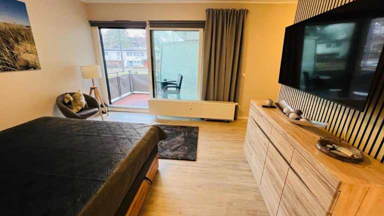 Die Unterkunft Bellevue Nr. 17 befindet sich 100 m vom Strand in Scharbeutz entfernt. In der Nähe liegen die Strände von Haffkrug und Sierksdorf, welche 1,5 km und 2,8 km entfernt sind. Der Flughafen Lübeck ist der nächstgelegene Flughafen und liegt 33 km entfernt.