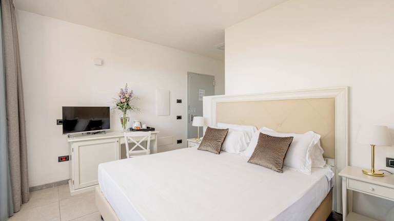 Die Zimmer sind klimatisiert und verfügen meist über einen Balkon mit herrlichem Meerblick. Zu den Ausstattungsmerkmalen gehören ein Queensizebett oder Kingsize-Bett, ein Sofabett, ein Safe, eine Minibar, ein Schreibtisch sowie ein TV mit Satellitenkanälen. Die Badezimmer sind mit einer Dusche, einem Haartrockner und Pflegeprodukten ausgestattet. Hausschuhe stehen ebenfalls zur Verfügung. WLAN ist in den Zimmern kostenlos.