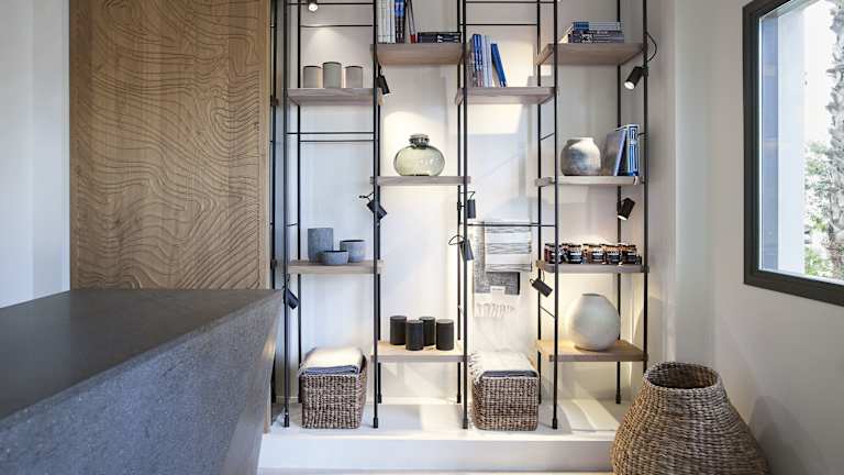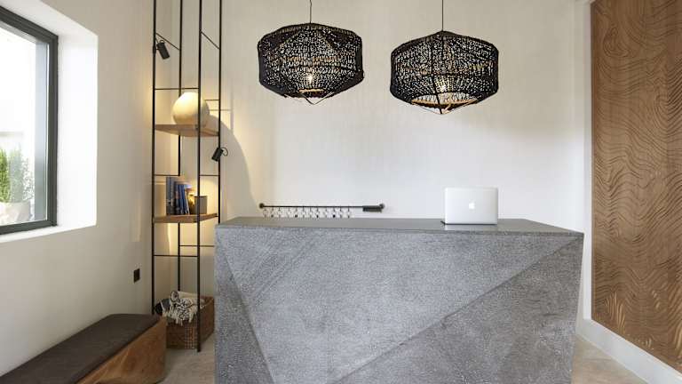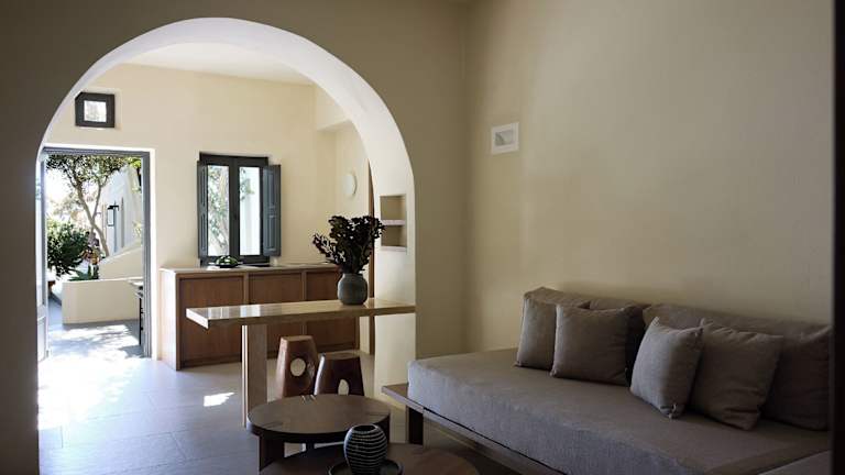 Das Hotel liegt unmittelbar am wunderschönen vulkanischen, schwarzen Strand Kamaris, etwa 5 km vom Regionalflughafen Santorin und rund 7 km von der Inselhauptstadt Fira entfernt. Der Strand ist mit Kieselsteinen versehen und ist partielle hoteleigene Strandabschnitte vorhanden.