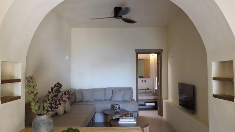 Die klimatisierten Zimmer sind mit Marmorböden, einem LCD-Sat-TV, einer Küchenzeile und einem Wohnbereich ausgestattet. Die Zimmer bieten einen Balkon oder eine private Terrasse mit Meerblick. Zur Standardausstattung gehören ein Doppelbett, eine Minibar, ein Safe und ein Schreibtisch. Im Bad stehen kostenfreie Pflegeprodukte, Bademäntel und ein Haartrockner zur Verfügung. Familienzimmer sind ebenfalls verfügbar. WLAN ist in den Zimmern kostenlos.