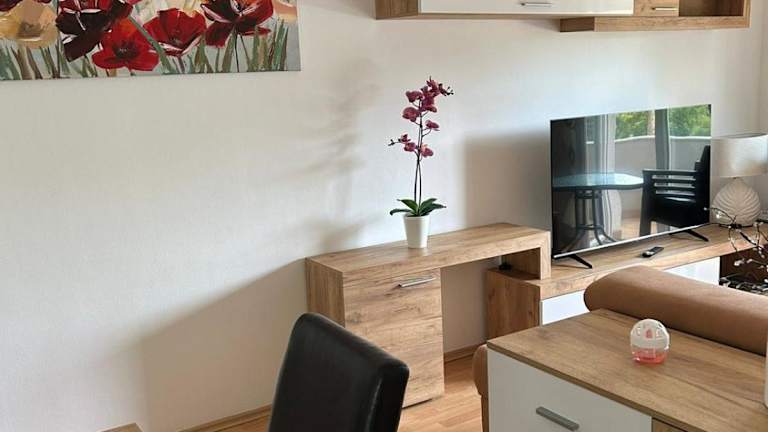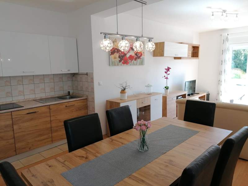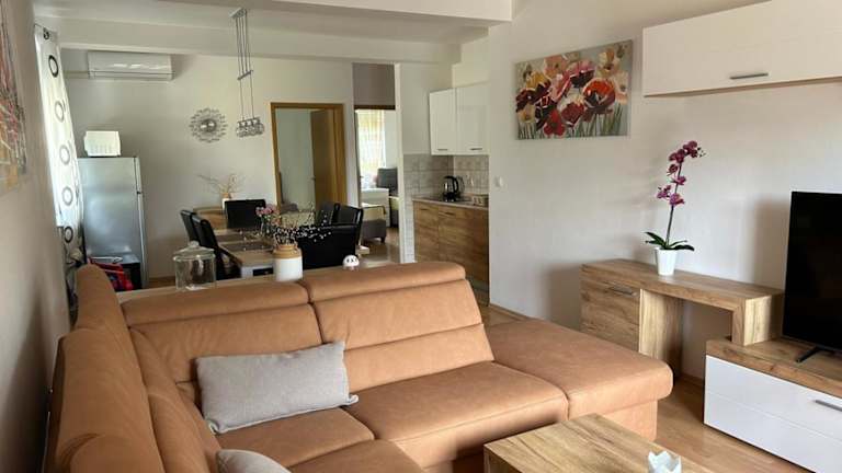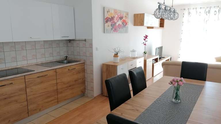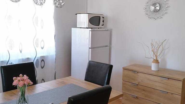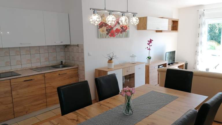 Die Ferienwohnung besteht aus 2 Schlafzimmern, einem Wohnzimmer und einer voll ausgestatteten Küche, die mit einem Kühlschrank, einer Kaffeemaschine und einem Wasserkocher ausgestattet ist. Darüber hinaus verfügt die Wohnung über ein Badezimmer mit Dusche und Haartrockner, sowie über Klimaanlage. Handtücher und Bettwäsche werden bereitgestellt.