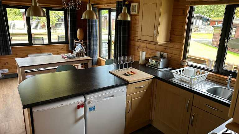 Das Chalet verfügt über drei Schlafzimmer, eine voll ausgestattete Küche mit Kühlschrank und Geschirrspüler, ein flachbild TV sowie einen Sitzbereich. Ein Badezimmer mit Dusche ist ebenfalls vorhanden. Bettwäsche und Handtücher werden bereitgestellt. Die Unterkunft ist familienfreundlich und bietet einen Privatparkplatz.