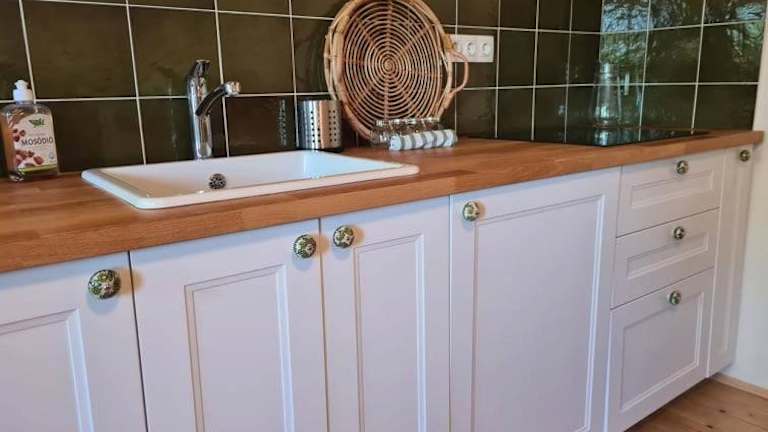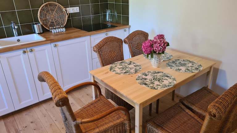 Die Unterkunft beinhaltet eine voll ausgestattete Küche zur Selbstverpflegung.