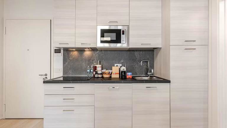Die Ferienwohnung umfasst 1 Schlafzimmer, ein Wohnzimmer, eine voll ausgestattete Küche mit einem Kühlschrank und einer Kaffeemaschine sowie ein Badezimmer mit einem Bidet und einer Dusche. Handtücher und Bettwäsche werden bereitgestellt. Die Unterkunft ist klimatisiert.