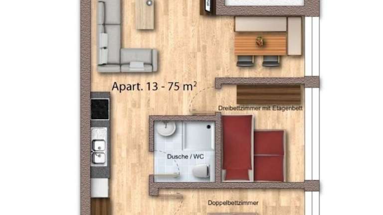 Die Ferienwohnung umfasst zwei Schlafzimmer und ein Wohnzimmer, welches mit einem TV mit Kabelkanälen ausgestattet ist. Eine voll ausgestattete Küche mit Kühlschrank und Geschirrspüler sowie ein Badezimmer mit Haartrockner bieten die nötige Bequemlichkeit. Handtücher und Bettwäsche werden bereitgestellt. Allergikerfreundliche Zimmer sind ebenfalls verfügbar.