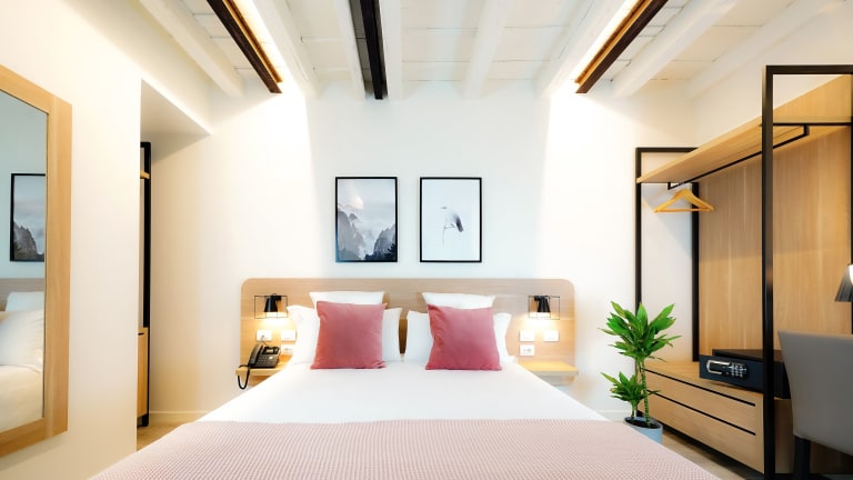Die Zimmer sind klimatisiert und verfügen über ein Doppelbett oder ein Queensize-Bett. Zustellbetten können auf Anfrage bereitgestellt werden. Zur Ausstattung der Zimmer gehören ein Safe, eine Minibar, ein Kühlschrank, eine Tee-/Kaffeemaschine sowie ein Schreibtisch. Zusätzlich sind Hausschuhe, ein TV-Gerät, ein Radio und ein Fön vorhanden, und die Badezimmer sind mit einer Dusche oder Badewanne und Kosmetikartikeln ausgestattet. Einige Zimmer bieten einen Balkon oder eine Aussicht auf die Stadt.