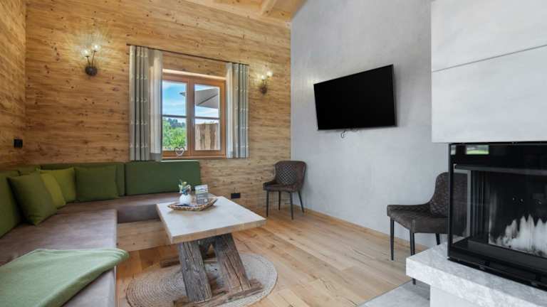 Das Chalet verfügt über zwei Schlafzimmer und ein Badezimmer. Zur Ausstattung gehören Bettwäsche, Handtücher, ein TV, eine voll ausgestattete Küche sowie eine Terrasse mit schönem Bergblick. Des Weiteren können Gäste die Sauna und den Whirlpool nutzen.