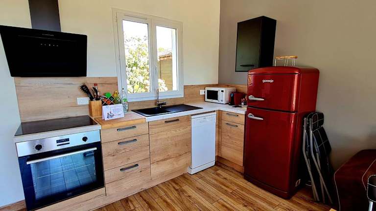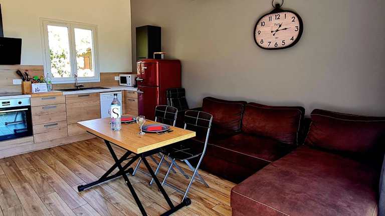 Das Ferienhaus mit Klimaanlage besteht aus einem Schlafzimmer, einem Wohnzimmer und einer voll ausgestatteten Küche, die über einen Kühlschrank und eine Kaffeemaschine verfügt. Das Badezimmer ist mit einer Dusche und einem Haartrockner ausgestattet. Handtücher und Bettwäsche werden zur Verfügung gestellt.