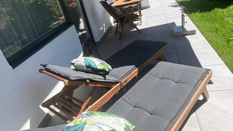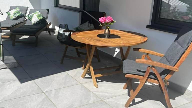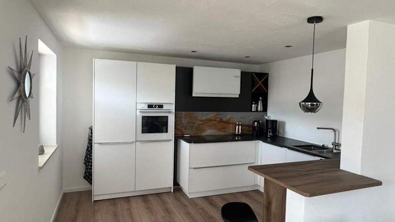 Die Ferienwohnung verfügt über zwei Schlafzimmer, ein Badezimmer, sowie eine voll ausgestattete Küchenzeile. Zudem gehören Bettwäsche, Handtücher und ein Flachbild-TV mit Kabelkanälen zur Ausstattung. Der Essbereich und die Terrasse mit Bergblick bieten zusätzlichen Platz zur Entspannung.