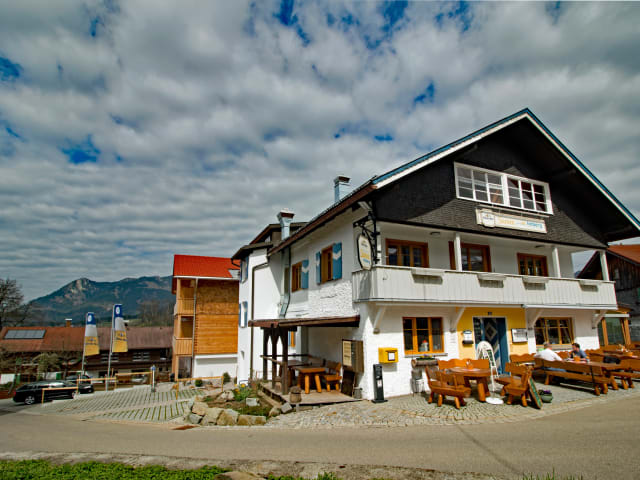 Ausgewogen frühstücken ... Die Auswahl für die erste Mahlzeit des Tages ist reichlich und frisch und Sie werden sicherlich nichts vermissen: Tees in allerlei Geschmacksrichtungen, Kaffee und Säfte, Milch und Joghurt, Brot, Brötchen in verschiedenen Variationen, Hefezopf an Sonn- und Feiertagen, Ei, Wurst und Käse und selbstverständlich die obligatorische Vollwertecke mit Müsli, Nüssen, Flocken sowie Obst frisch und gedörrt. Egal ob ehrgeizig & sportlich, mit der der ganzen Familie oder ganz entspannt dem Alter angepasst: wer vorhat sich tagsüber körperlich zu betätigen, der sollte ordentlich und gesund frühstücken. Zudem richten wir Ihnen - auf Wunsch & Bestellung - gerne ein ausgewogenes Lunchpaket für unterwegs. Auf der schattenspenden Gartenterrasse im Sommer, im Wintergarten mit den großen Panoramascheiben oder in der gemütlichen Gaststube – was Sie als Ihr Lieblingsplätzchen ausmachen ist einerlei! Von gegenüber, von der anderen Seite des Ostrachtals grüßt der Grünten, der „Wächter des Allgäus“ herüber und bei einer deftigen Brotzeit, einem erfrischenden Eisbecher, Kaffee und Kuchen vergeht die Zeit wie im Fluge und das Alpenglühen taucht das Abendessen in romantisches Licht. Das Wohl von Leib und Seele kommt also sicher nicht zu kurz und zu den jeweiligen Spezialitäten findet sich auf der Getränkekarte auch der passende Wein, das ein oder andere frischgezapfte Bier oder alkoholfreie Getränke nach Ihrem Geschmack. Sie bedienen sich zu bestimmten Anlässen am Büfett oder wir grillen für Sie im Garten. In jedem Falle gibt es auch immer kind- und seniorengerechte Alternativen und Sonderwünsche erfüllen wir im machbaren Rahmen.