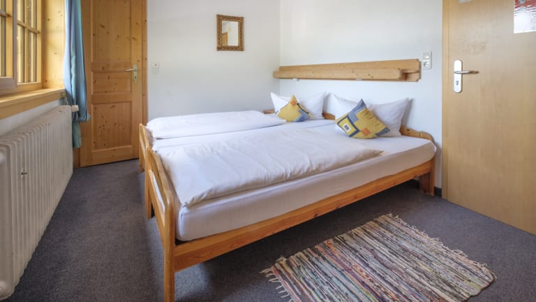 Zimmer für 2-6 Personen und ein Mehrbettzimmer für bis zu 12 Personen; Alle Zimmer mit DU/WC, Doppelzimmer Nr.1 Nostalgiebad und WC Türe nebenan - nur für Zi.Nr.1 zugänglich); teilweise Balkon; Halbpension (reichhaltiges Frühstücks- buffet und 4-Gänge-Menü nach Wahl, gerne servieren wir Ihnen auch vegetarische Menüs). Bitte beachten Sie, dass wir kein Allergikerhaus sind.