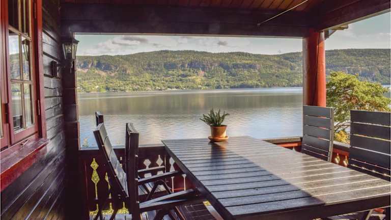 Die Unterkunft Bergheim ist gelegen in Vikersund und bietet einen schönen Blick auf das Meer.